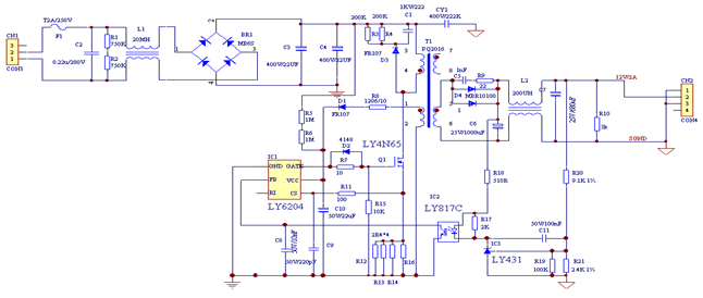 充電器適配器副邊反饋12V* 2A=24W典型應用電路圖