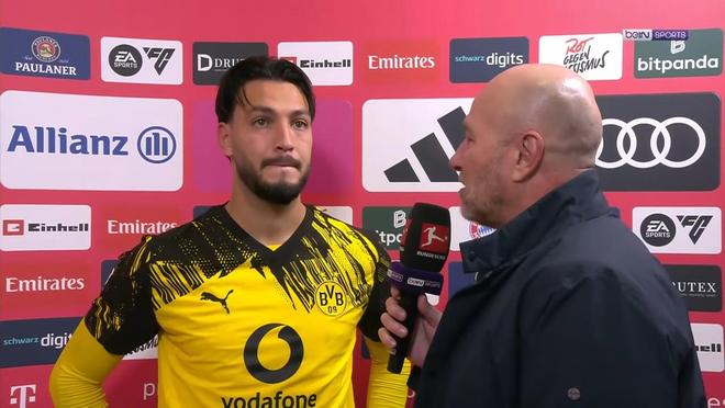 德甲第7輪比賽,拜仁主場(chǎng)2-1戰(zhàn)勝多特蒙德。賽后,多特后衛(wèi)本塞拜尼接受了beIN SPORTS的采訪(fǎng)。