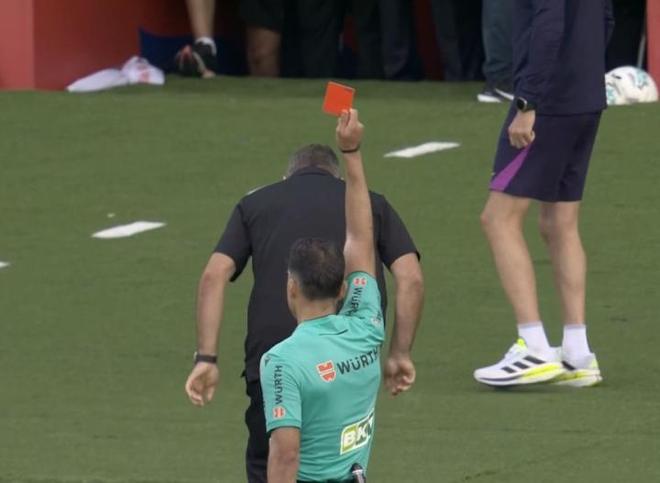 據(jù)裁判報(bào)告,弗里克先是鼓掌抗議判罰,被黃牌警告后做出表示不滿(mǎn)的手勢(shì),拿到第二張黃牌。